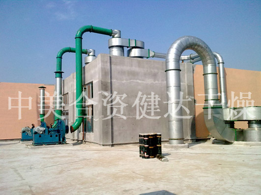 气流干燥机热效率高气流干燥采用气固相并流操作,而且,在表面气化阶段,物料始终处于与其接解的气体的湿球温度,一般不超过60~65℃,在干燥末期物料温度上升的阶段,气体温度已大降低,产品温度不会超过70~90℃。因此,可以使用高温气体。一根直径为0.7m长为10~15m的气流干燥管,每小时可处理25吨煤或15吨硫铵。气流干燥器设备简单,占地小,投资省。与回转干燥器相比,占地面积减小60%,投资约省80%。同时,可以把干燥、粉碎、筛分、输送等单元过程联合操作,不但流程简化,而且操作易于自动控制。应用范围广气流干燥可使用于各种粉粒状物料。